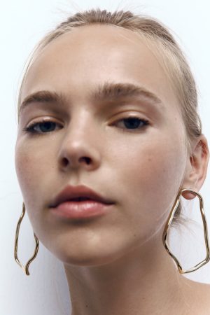 Por último, te proponemos incluir en tu look unos preciosos pendientes de aro irregular en un tono dorado que creemos que casará a la perfección con el color de los elementos anteriores. Si optas por un recogido para el cabello (como es el caso de la modelo que luce el vestido palabra de honor de Zara), estos pendientes resaltarán aún más entre todo el conjunto. Cuentan con un cierre de tuerca y su precio es de 12,95€ (REF.: 1856/348).