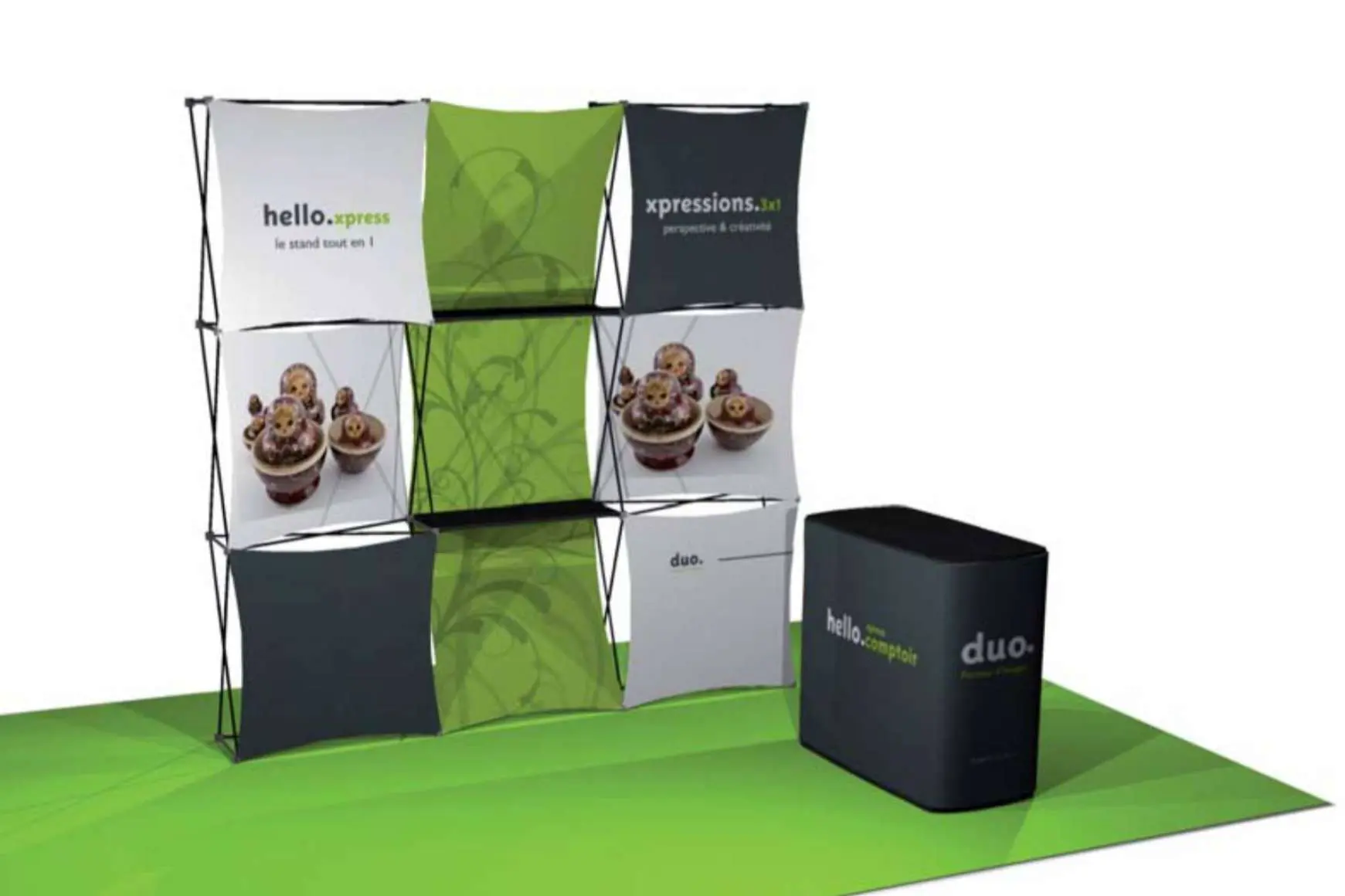 El Display Portátil Xpressions ofrece una experiencia única para emprendedores y empresas, ya que es un dispositivo ligero y sumamente fácil de montar. Su montaje es rápido y puede guardarse y volver a utilizarse de formas diferentes en otras ferias. Se trata de una estructura plegable que ofrece innumerables posibilidades de configuración gracias a su diseño original y flexible que presenta hasta nueve formas diferentes de estructuras y la capacidad de unir gráficas de diversos tamaños en dos niveles de profundidad, lo que genera un aspecto dinámico en 3D.
