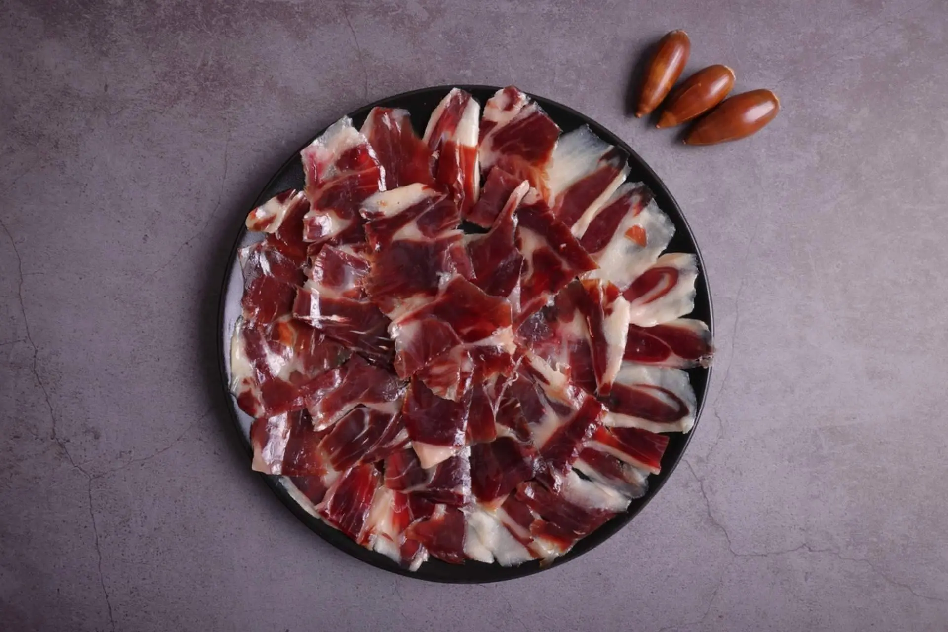 Finalmente, La Despensa Extremeña complace a los paladares más exigentes con el más destacado de los manjares españoles: el jamón de bellota ibérico, denominación de origen Extremadura 100 % raza ibérica, cuyas piezas alcanzan los 8,5 kilos.