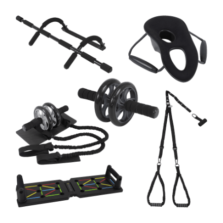 Aldi nos ofrece un conjunto completo de accesorios enfocados a ejercitar todos los grupos musculares del cuerpo. Este kit incluye una tabla de flexiones, un rodillo abdominal con cintas y una alfombrilla para las rodillas, una cinta de entrenamiento en suspensión, un entrenador para abdominales «sit up» y una barra de dominadas con instrucciones para realizar los ejercicios. Todo esto está disponible por tan solo 9,99 euros.