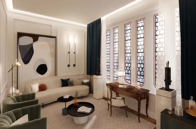 Para entender mejor la relevancia de este edificio, hay que remontarse a sus orígenes. Es importante resaltar que se trata de un palacio que se ha transformado en un hotel. Para ello se ha inspirado en la esencia y la historia de la casa-palacio familiar originaria. Este reto ha supuesto un ambicioso proyecto de rehabilitación e interiorismo que ha revitalizado el palacio. Y, a su vez, ha mantenido su singularidad e identidad recuperando e integrando elementos de marquetería y vidrieras existentes, así como algunas de las piezas más relevantes de la colección original de arte y mobiliario.