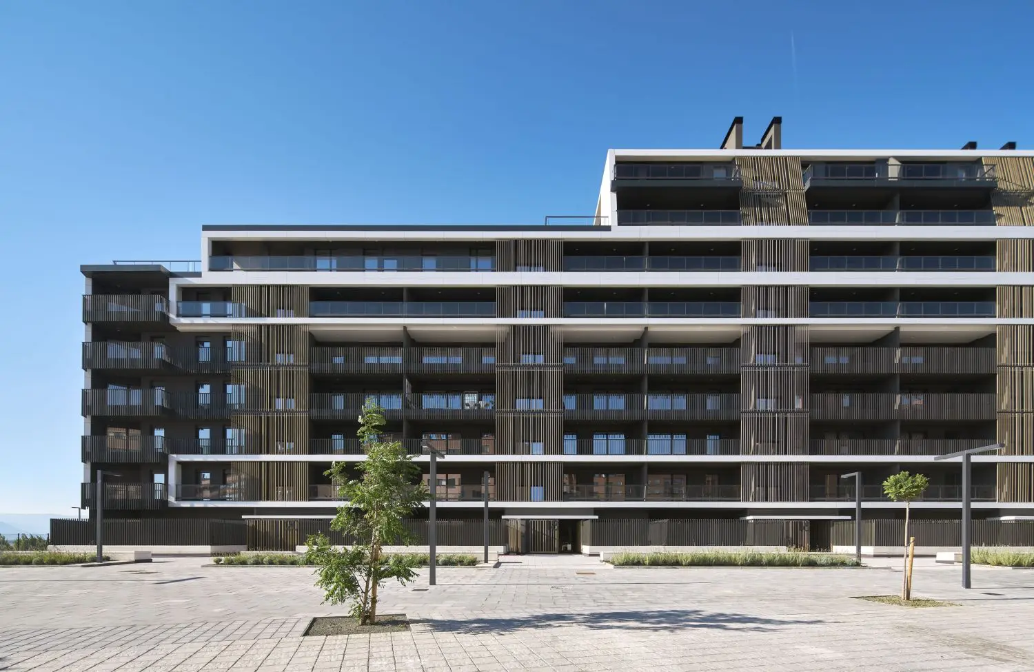 El proyecto de Naos mantiene la filosofía de Kronos Homes: está concebido para generar barrio y lo hace desde la sostenibilidad y un cuidado diseño arquitectónico para el que cuenta con el estudio local Tabuenca-Saralegui y Asociados. Sus formas estilizadas y el extremo en ángulo, recuerda a la proa de un barco varado en el río Arga, que, con sus amplias terrazas, permiten disfrutar de una panorámica de este entorno natural de Barañáin.