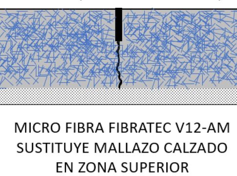 Fibratec ha demostrado en el estudio N.º: RWHT07777 realizado por la Escuela de Ingeniería Civil de La Universidad de Birmingham en febrero del 2002, que la adición de 2 kg/m³ de su fibra para hormigón V12-AM de 13 mm fabricado en Japón con el mayor contenido de zirconio a nivel global, aporta al hormigón las características necesarias para que estos micro movimientos disminuyan drásticamente. Por ende, su adición permite sustituir el mallazo calzado, ya que su presencia ya no es necesaria. El estudio arroja los siguientes resultados a 28 días en un hormigón H25: Disminución de la penetración de aire un 87 %, disminución de penetración de agua un 58 %, disminución de carbonatación un 48 %, disminución de absorción por capilaridad un 37 %.