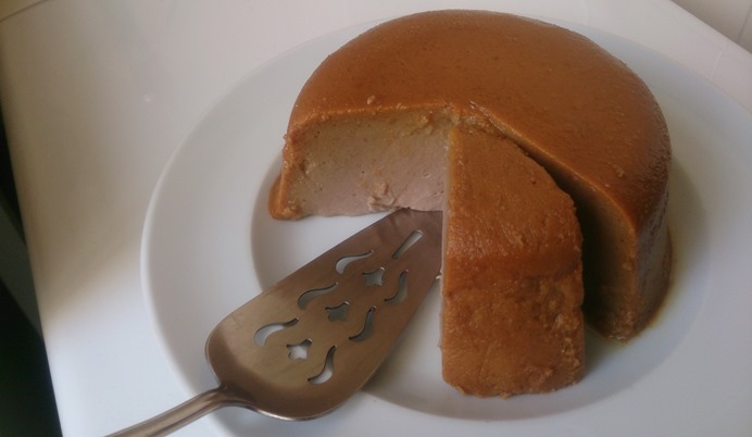 - Para servir, pasa un cuchillo por el borde del flan para aflojarlo y luego coloca un plato sobre el molde. Invierte el molde para que el flan caiga con cuidado sobre el plato, revelando el caramelo dorado en la parte superior.