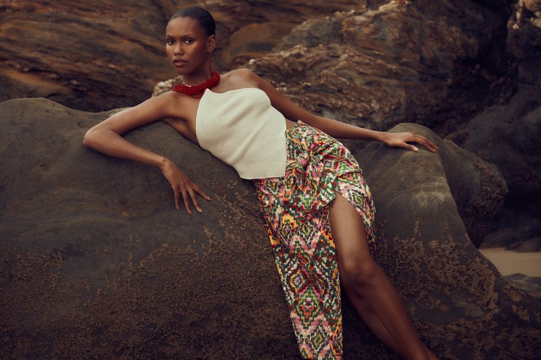 Hablamos de una de las propuestas más llamativas de la marca. Se trata de una falda pareo midi con nudo lateral, de tiro alto y estampado étnico. Todo diseñado para lograr un look divertido, fresco y original.