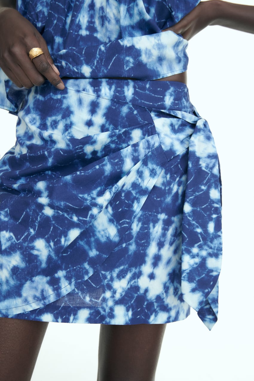 Este año Zara ha apostado fuerte por este tipo de faldas, incluyendo diferentes diseños en su catálogo. Otro de los que están llamando más la atención es su falda pareo mini con nudo delantero, de tiro alto y con cierre trasero con cremallera oculta en la costura.