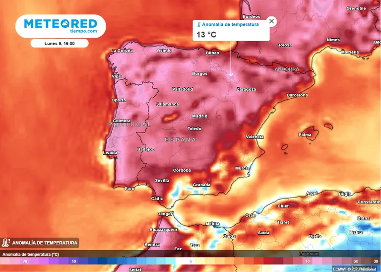 - Miércoles: este día seguirá siendo inusualmente cálido para la época del año en la mayor parte de la Península. Se esperan máximas entre 5° y 10° por encima de lo normal. En el interior de Galicia, las comunidades cantábricas, el Guadiana y el Guadalquivir, las temperaturas superarán los 32°C. En Canarias, se prevén más de 34°C en Tenerife y Gran Canaria. El jueves no traerá grandes cambios, con condiciones estables y temperaturas similares a las del miércoles.