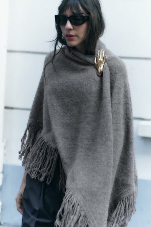 La versatilidad de este broche también se refleja en la forma en que puede llevarse. Algunas personas optan por colocarlo en sus chaquetas o abrigos, mientras que otras prefieren usarlo para sujetar bufandas o chales, como se muestra en el lookbook de Zara. Esto demuestra que el broche de Zara es un accesorio que se adapta a las necesidades y preferencias de cada persona, lo que lo convierte en un elemento imprescindible en cualquier guardarropa.