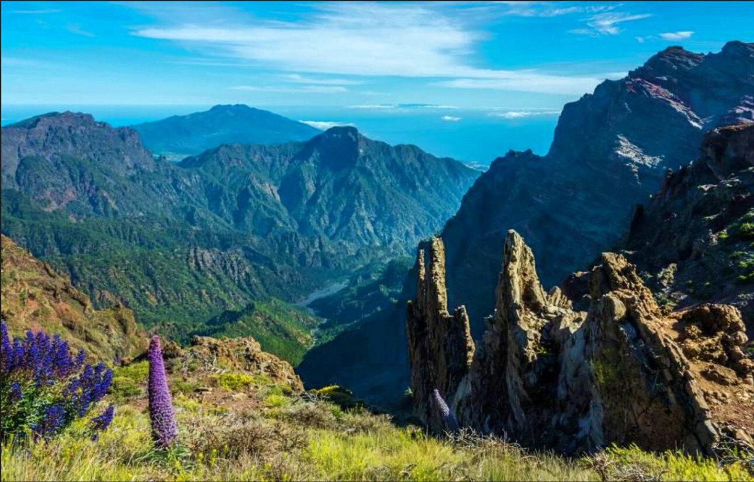 El impresionante Parque Nacional de La Caldera de Taburiente se extiende a través de una amplia superficie de rocas volcánicas, montañas y barrancos. Esta área protegida, declarada Reserva de la Biosfera en 1989 por la UNESCO, es ideal para los aventureros y uno de los lugares más espectaculares de la Islas Canarias. Ofrece una variedad de senderos con paisajes alucinantes para a los visitantes.