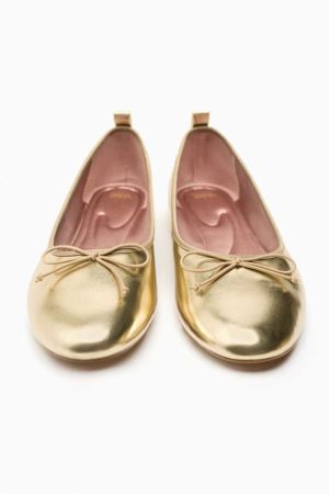 Si bien las botas de caña alta, las botas cowboy y las botas biker en todas sus alturas y modelos se roban la atención como calzado cañero y en tendencia para esta temporada de otoño, las bailarinas se erigen como la opción perfecta para crear looks más dulces. y atractivos. En Zara, han comprendido a la perfección la versatilidad y comodidad que ofrecen las bailarinas, presentando un modelo que combina a la perfección con todos los estilos y aporta un toque de tendencia gracias a su diseño en color dorado.