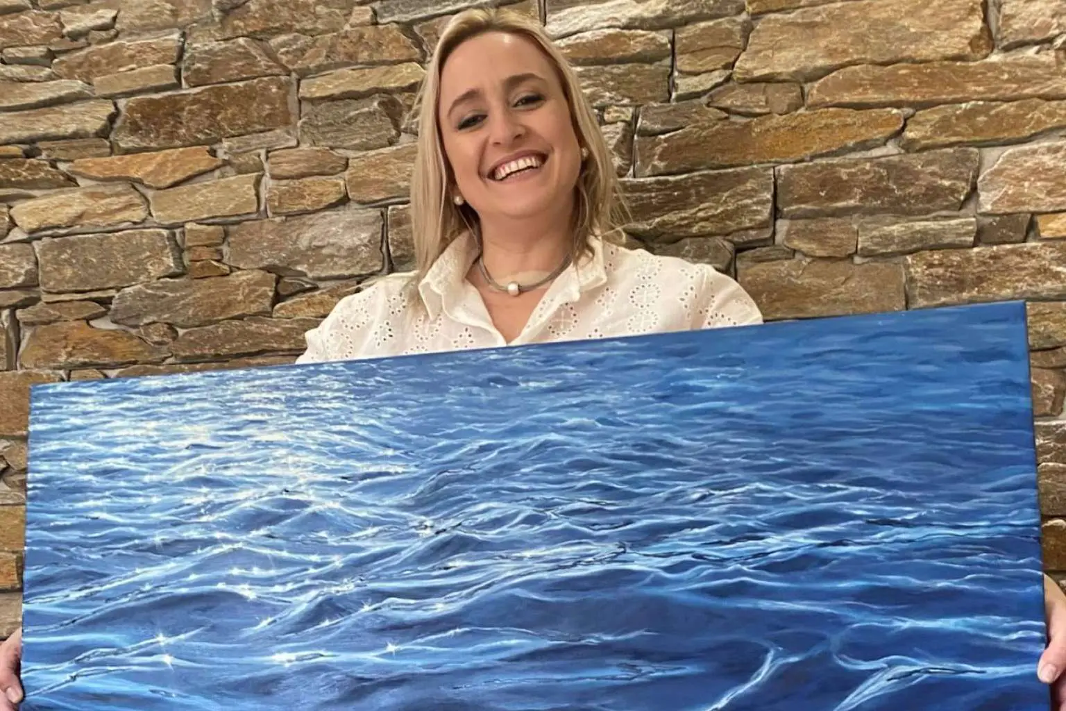Por este motivo, sus obras de arte se caracterizan por la serenidad del mar y la superficie del agua. Además, en algunas de ellas se puede intuir la fuerza de las olas. En cuanto al proceso creativo que desarrolla para crear estas pinturas, Carmen Ferrando cuenta que el punto de partida es siempre un estado emocional que va evolucionando a medida que la creación avanza. A su vez, el punto final solo es posible cuando ella se siente en armonía con la pintura.