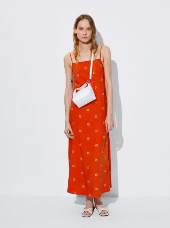 Optimista, vibrante y extremadamente enérgico. Así es el naranja, color que protagoniza el período estival en 2023. Este vestido con estampado de lunares cuenta con el tono de moda, tan bonito y favorecedor como juvenil. Su largura le aporta un extra de comodidad que además ayuda a estilizar la figura. Precio: 27,99€.