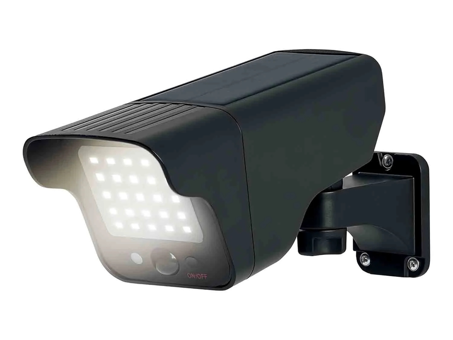 Diseñada para montarse en la pared en exteriores, esta cámara imitación es resistente a las inclemencias del tiempo y cuenta con protección contra chorros de agua (certificación IP44). Su carcasa es orientable e inclinable y el sensor tiene un alcance de cobertura de aproximadamente 3-5 metros. Todo esto está disponible a un precio de 14,99 euros.