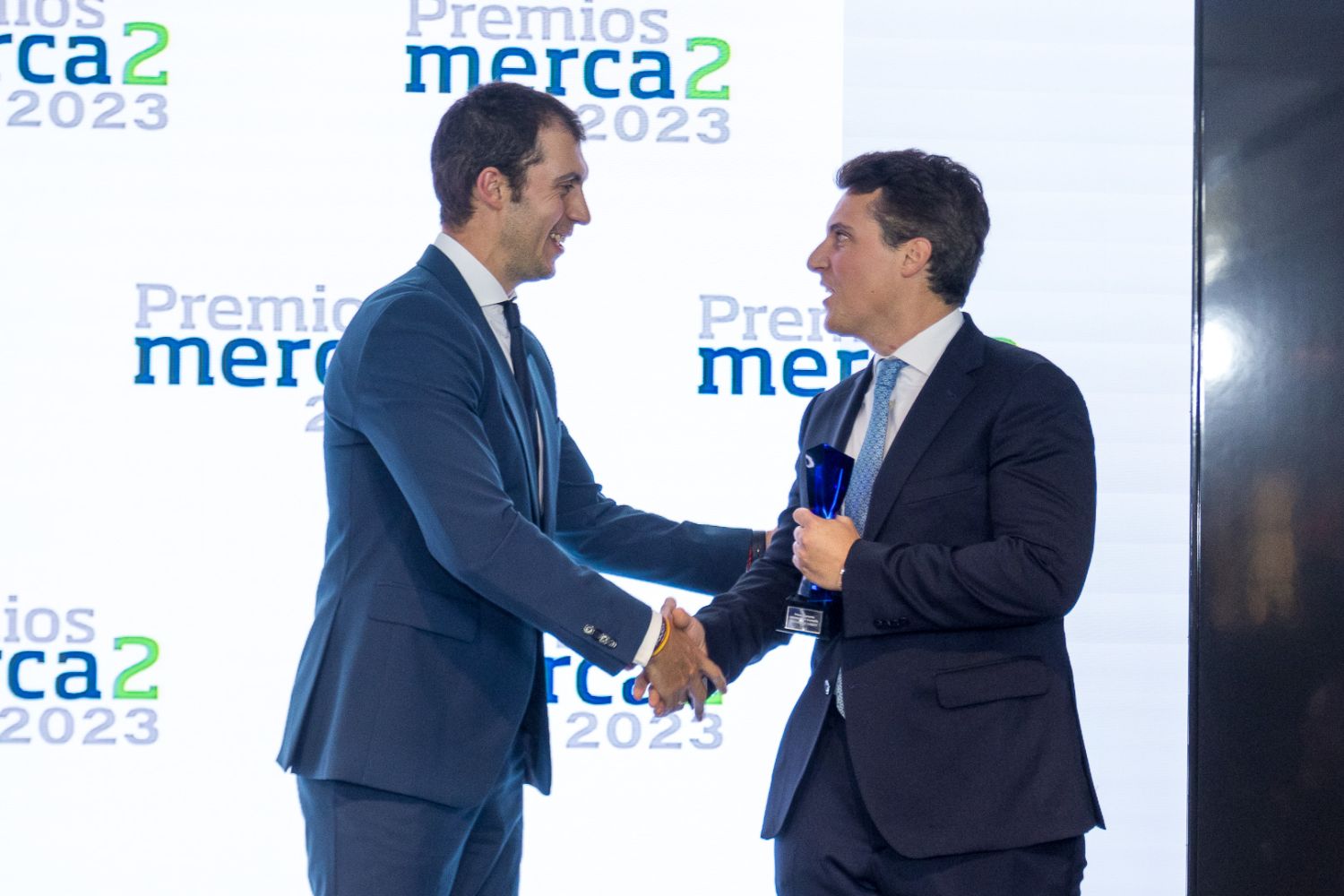 Juan Manuel Moreno Bonilla ha recibido de manos del alcalde de Madrid, José Luis Martínez Almeida, y en nombre de la Comunidad de Andalucía, el premio MERCA2 de Transformación Económica.