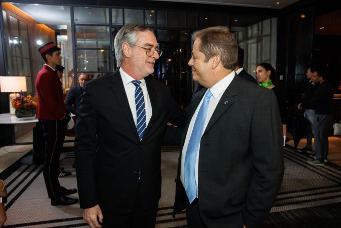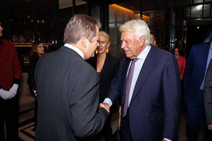 Alejandro Suárez Sánchez-Ocaña saluda al ex presidente del Gobierno de España, Felipe González.