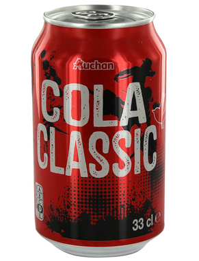 Vamos por fin con la ganadora de nuestro ranking, y es la ‘Coca Cola’ más barata de todas, debido a que la lata se sitúa en los 33 céntimos de precio. Hablamos por supuesto de ‘Cola Classic’, la bebida de Alcampo, que antaño era la más cara de la lista pero que ahora se ha convertido en la opción preferente si quieres ahorrar. Debes saber que su contenido calórico es muy alto, con 43 kcal por lata y 10,7 gramos de azúcar cada 100 ml; mientras que su sabor recuerda al de los polos flash que tomamos en verano.