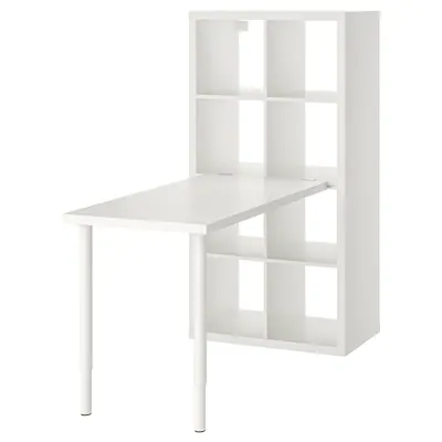 Si deseas añadir un tablero y patas a una estantería KALLAX, puedes utilizar los herrajes INLÄGG. Alternativamente, puedes optar por esta combinación ya preparada que incluye un escritorio sencillo y un amplio espacio de almacenaje. Puedes ajustar la altura del tablero, ya que las patas se adaptan entre 60 y 90 cm para satisfacer tus necesidades específicas. Ahora puedes adquirir este conjunto por un precio de 114 euros.