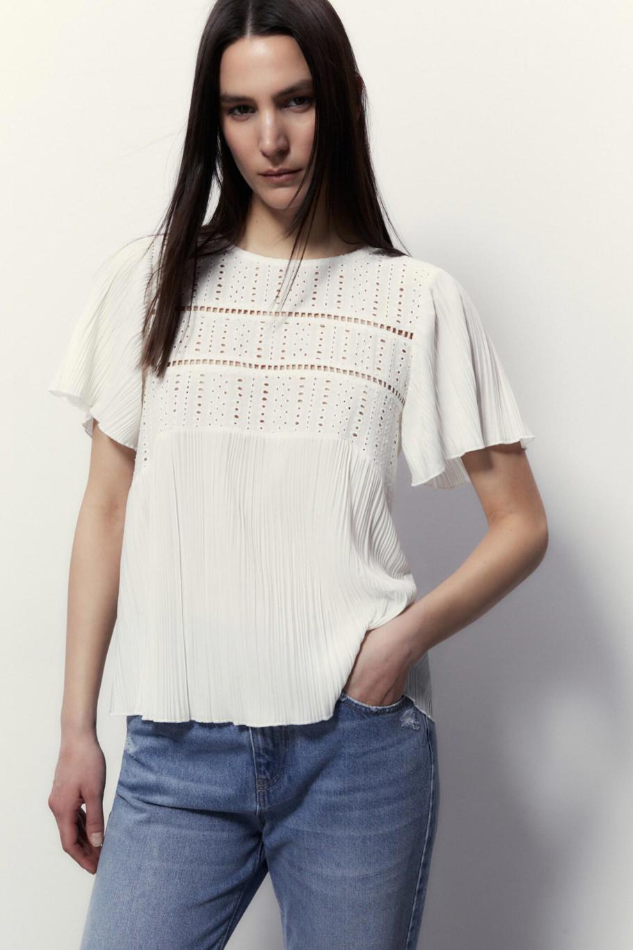 Con sus detalles artesanales troquelados y un versátil blanco crudo, esta camiseta plisada resulta todo un acierto de cara a los días menos fríos de este invierno debido a que los pliegues y el troquelado le otorgan un toque distintivo y artesanal, perfecto para la temporada. Una gran idea es llevarla con una falda midi de tonos terrosos y botas, aunque también te va a quedar genial con unos pantalones vaqueros de corte recto y una chaqueta ligera. Sfera te la ofrece por apenas 5,55 euros, así que date prisa si quieres hacerte con la tuya.