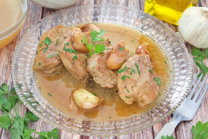 - Sirve el lomo al ajillo caliente, acompañado de una generosa porción de la deliciosa salsa de ajo y vino blanco.