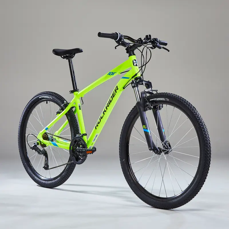 Ofrece un cuadro ligero, 21 velocidades, ruedas de 27,5″ (o 26″ en talla XS) y neumáticos adecuados para terrenos variados. Para un mayor control, cuenta con estribos de freno V-Brake y neumáticos con tacos laterales. Rockrider respalda esta bicicleta con una garantía de por vida para el cuadro, la potencia y el manillar. Está destinada a aquellos que desean realizar travesías en bicicleta de montaña de hasta 1 hora y 30 minutos en condiciones de tiempo seco. También está disponible en talla XS con ruedas de 26″ y existe una versión específica para mujeres. El precio de esta bicicleta es de 259,99 euros.