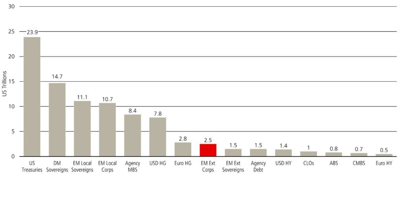 Gráfico 1: Los bonos corporativos externos de mercados emergentes son una clase de activo importante
