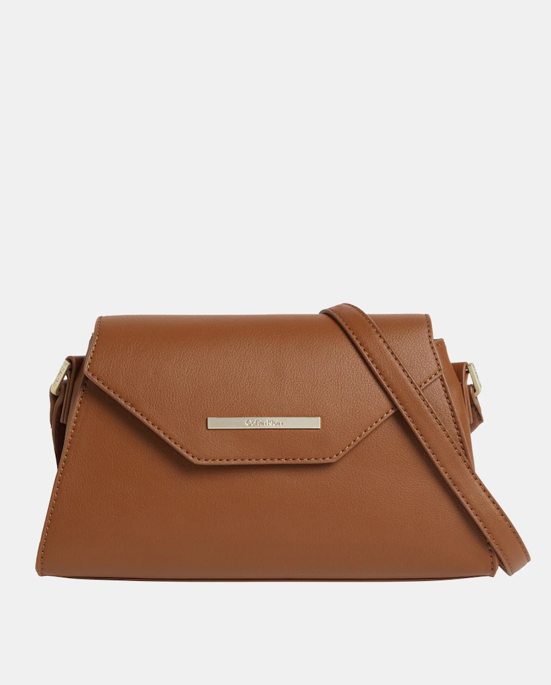 Si estás en busca de un bolso original, juvenil y divertido, te encantará este modelo de Calvin Klein. Se trata de un bolso tipo bandolera mediana en un elegante tono camel con solapa y cierre magnético. Destaca por su asa estrecha ajustable y su forma geométrica única, que le aporta un toque distintivo.