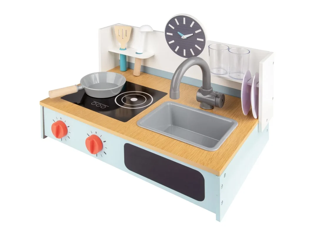 La cocinita de juguete de sobremesa de Lidl es otro juguete estupendo para estimular la creatividad, la imaginación y la motricidad en los niños. Cuenta con muchos detalles, como un fregadero con grifo, un reloj con agujas móviles, una superficie de pizarra para escribir, 2 mandos giratorios con sonido de clic y 2 estantes. La edad recomendada para este juguete es a partir de 3 años. El precio en Lidl es de 24,99 euros. Además, la es combinable con otros juegos de Playtive. ¡