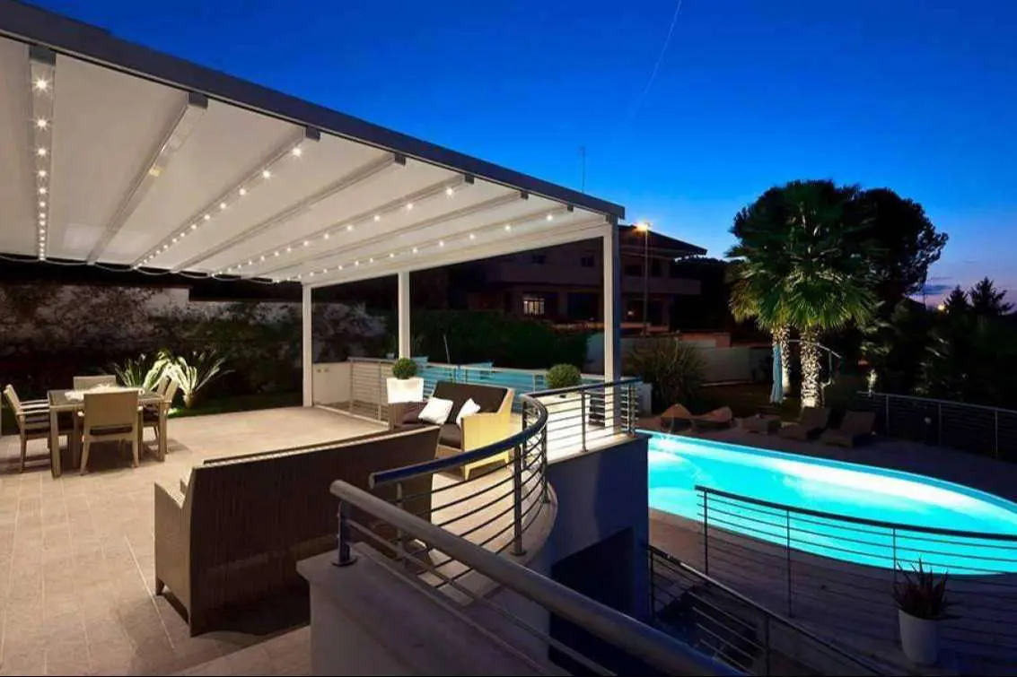 El secreto de su funcionalidad reside en que son pérgolas bioclimáticas orientables o retráctiles, con lamas de aluminio regulables, que pueden ser controladas con un sistema silencioso y automático, gestionado con un mando a distancia. Esto permite modificar fácilmente la posición, la apertura y el cierre de las lamas a elección, aportando un ambiente agradable en todo momento.