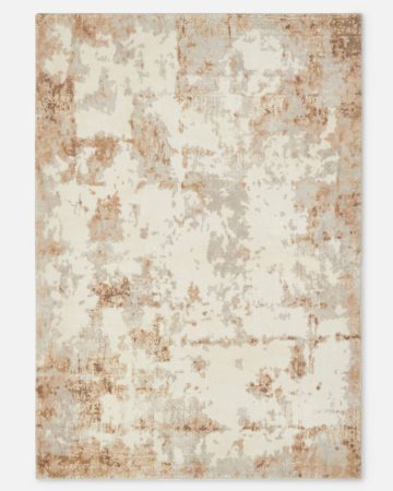 Los motivos abstractos en tonos grises, blancos y marrones, que se asemejan a las tendencias de la década de 1970, hacen que esta alfombra destaque. Su aspecto nos hace pensar que ha sobrevivido al paso del tiempo y que ha sido redescubierta para adaptarse a la estética actual.