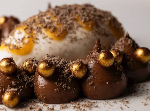Naveira es consciente de la fusión perfecta de sabores que se consigue con el café y determinados productos en un postre, de madre francesa el cocinero adquirió un delicado estilo de repostería que lleva a su carta, sus estudios de cocina y el trabajo en algunas de las mejores salas del país reafirmaron esta virtud de cocinero repostero. De esa preparación nacen postres sutiles, de emocionantes sabores y elaborados con una delicadeza exquisita, es el caso de una de sus últimas creaciones, el ‘Mousse de chocolate y café L’or, helado de café, toffe de café y crumble de especias´, con el chocolate como aliado del café, dos ingredientes que se unen dando lo mejor de cada uno, la suma de otras texturas elaboradas también con café es una apuesta ganadora, ensamblando la ligereza y frescura del helado, la densidad golosa del toffe y el crumble de especias que contribuye a aportar otra textura crujiente y de gran efectismo para el aspecto visual del postre terminado.