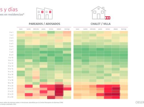 El estudio también indica que, tanto en chalés adosados como independientes, la mayor concentración de robos e intrusiones se produce los viernes y el sábado entre las 19 y las 23 horas. Una franja de tiempo que coincide con momentos en los que los propietarios se ausentan de sus viviendas para realizar actividades de ocio en el fin de semana.