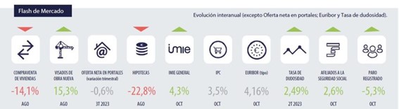 El índice Tinsa IMIE General y Grandes Mercados incluye cada mes una selección de otros indicadores inmobiliarios y económicos relevantes para analizar la evolución y perspectivas del sector residencial.