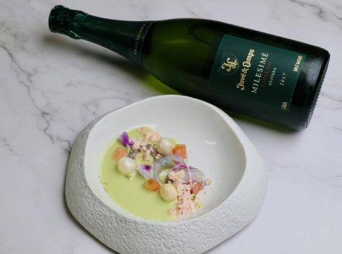 Con una clara identificación de su territorio y sus lonjas el alicantino llamaba a su siguiente plato `Vas y vienes a Santa Pola´, unas quisquillas, emulsión de manzana verde, nieve de su coral, tomate y encurtidos secos daban forma al plato. No abandonaba tampoco los productos del mar López, su llamada `Ostra´, sería elaborada con ostra del Delta del Ebro al vapor y frita, escabeche de algas y aguacate. Para disfrutarlos en la copa en este caso un Juvé & Camps Milesimé Xarel·lo 2017.