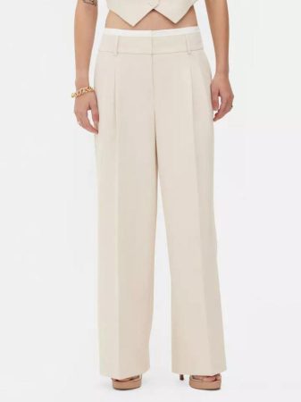 Entre los destacados de la colección se encuentran los pantalones «Wide Leg», que se caracterizan por su confección en algodón, cintura media con cierre de cremallera y botón oculto, trabillas para cinturón, pinzas en la cintura y bolsillos laterales. Su pernera ancha que llega hasta los pies los convierte en una opción elegante y abrigada, ideal para combinar con una americana de color blanco y una camisa blanca. Estos pantalones se pueden adquirir por tan solo 18 euros.
