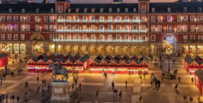La icónica Plaza Mayor se transforma en un escenario festivo durante la temporada navideña, albergando uno de los mercadillos más tradicionales y pintorescos de Madrid. Con sus casetas de madera decoradas con luces brillantes, este mercado ofrece una variedad de productos artesanales, juguetes, dulces y decoraciones navideñas. Sumérgete en la tradición mientras paseas por los pasillos decorados y disfruta de la animada atmósfera que llena la plaza.