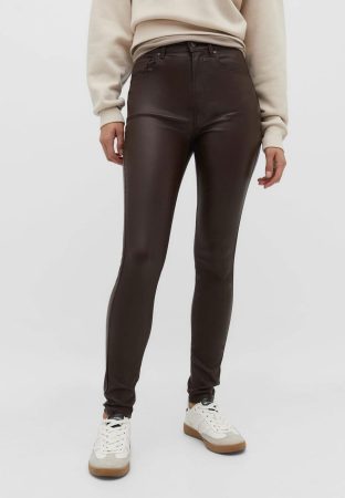 El modelo recto en efecto piel ha conquistado corazones por su versatilidad. Con su cintura alta, destaca las caderas y estiliza la figura, ofreciendo un aspecto más elegante y sofisticado. Su corte ofrece numerosas posibilidades para jugar con accesorios y estilos.