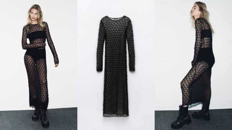 Ahora, para quienes buscan emular este encantador estilo sin comprometer su bolsillo, Zara ha presentado su propia versión ‘low cost’ de este icónico vestido. Esta propuesta de la reconocida marca de moda ofrece la oportunidad de adoptar la tendencia de las transparencias en una prenda bastante similar a la que vestía la artista, manteniendo el atractivo y la audacia que caracterizó el vestido de Rosalía, pero a un precio mucho más asequible.