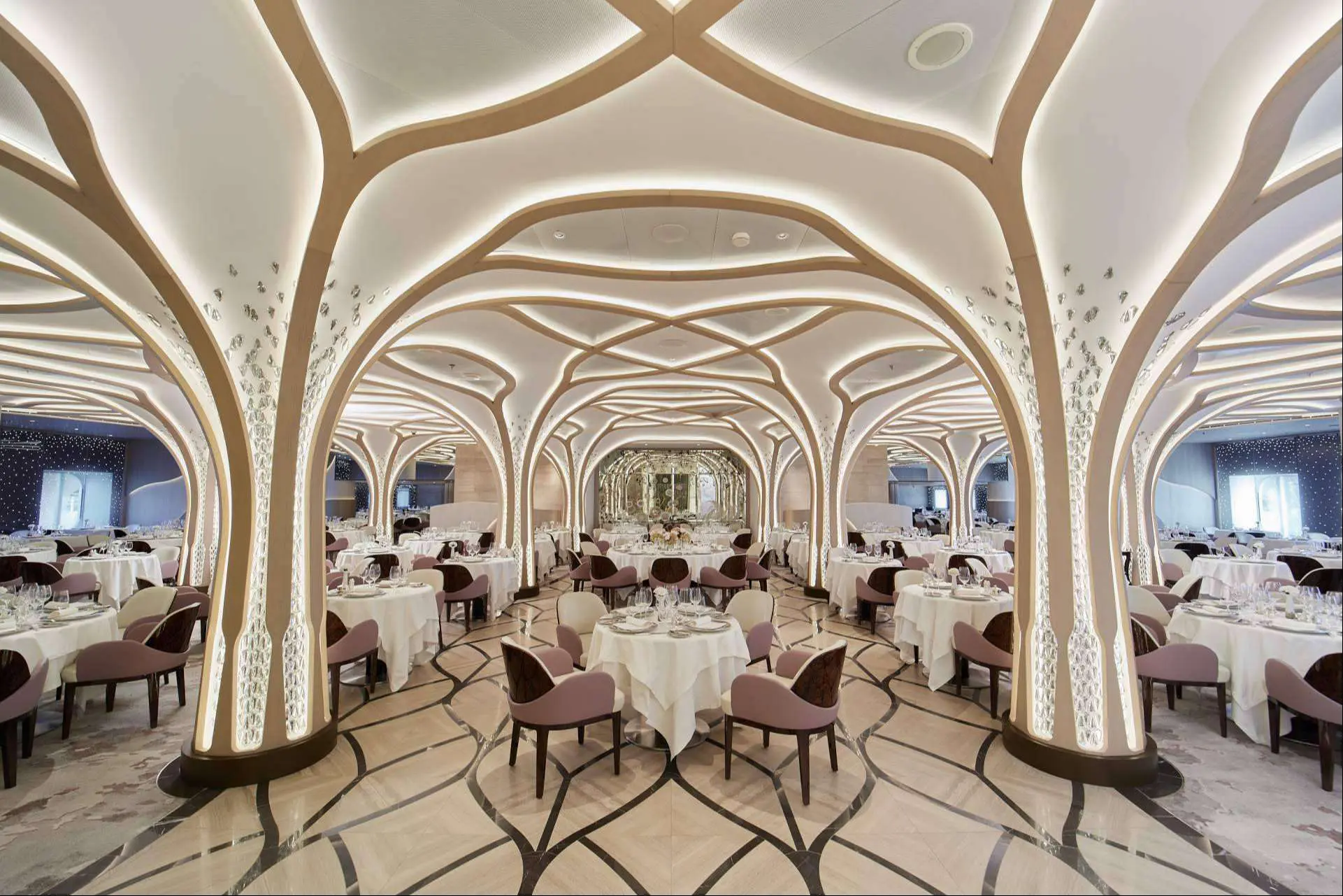 El denominado programa culinario Epicurean Perfection se ha mejorado en las 8 exquisitas experiencias gastronómicas del barco, incluidos sus 5 restaurantes de especialidades de cortesía, con 130 nuevos platos creados exclusivamente para Seven Seas Grandeur. La gastronomía a bordo estará a cargo del chef ejecutivo senior Michael Meyepa y el director de alimentos y bebidas Stéphane Carriou, junto con un equipo dedicado que incluye a grandes chefs, sommeliers y profesionales del servicio de la industria. Además, la experiencia culinaria se mejorará con diseños cautivadores y reinventados para los restaurantes exclusivos Compass Rose, Prime 7, Chartreuse y La Veranda.
