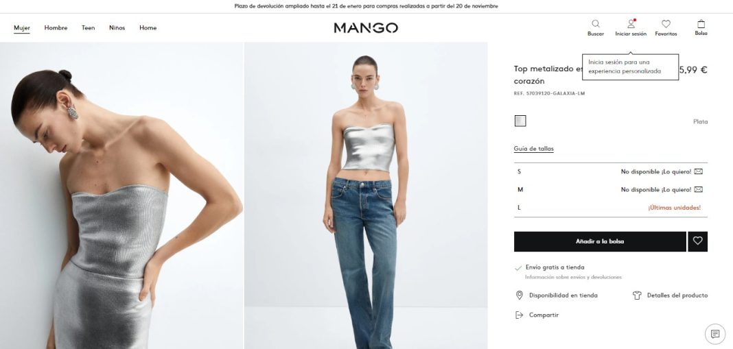 Este top metalizado se convierte en la inversión estrella de la temporada, ofreciendo no solo estilo, sino también una solución económica y funcional para tus necesidades de moda navideña. ¡Prepárate para descubrir la prenda que cambiará la forma en que te enfrentas a tus looks estas Navidades!