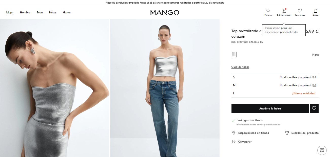 Este top metalizado se convierte en la inversión estrella de la temporada, ofreciendo no solo estilo, sino también una solución económica y funcional para tus necesidades de moda navideña. ¡Prepárate para descubrir la prenda que cambiará la forma en que te enfrentas a tus looks estas Navidades!