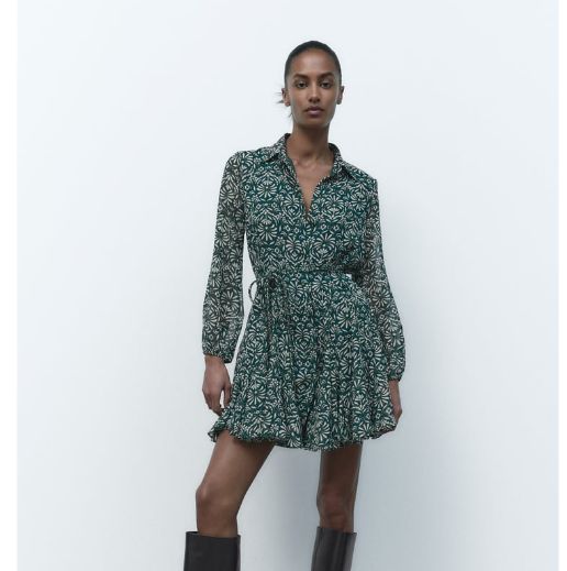 Por qué no. Un vestido de lo más veraniego para estas fechas. Si vas bien abrigada, con el calor de interiores, siempre requiere para ir de fiesta un vestido favorecedor como este. Es tendencia también lo camisero, en este caso estampado, de cuello solapa y manga larga acabada en elástico, cinturón trenzado en mismo tejido, forro interior combinado, cierre frontal con botones metálicos. Seguimos sin no señalamos otra cosa con el 40% y en este caso se queda en 23,97 euros. Como ves, renovarás tu armario con muy poco dinero gracias a Zara.