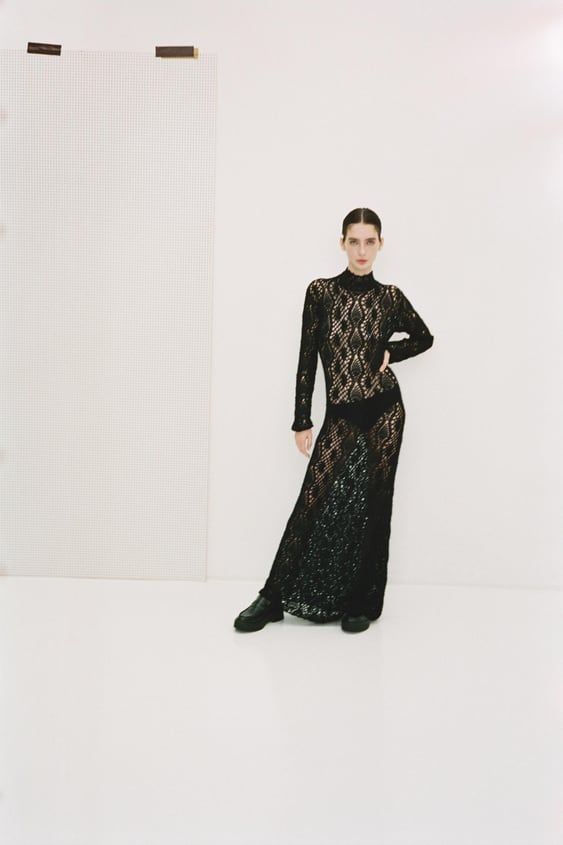 Con su diseño meticuloso y detalles delicados, el Vestido Largo Punto Combinado en Crochet Limited Edition de Zara se convierte en una elección única para una noche llena de estilo y distinción.