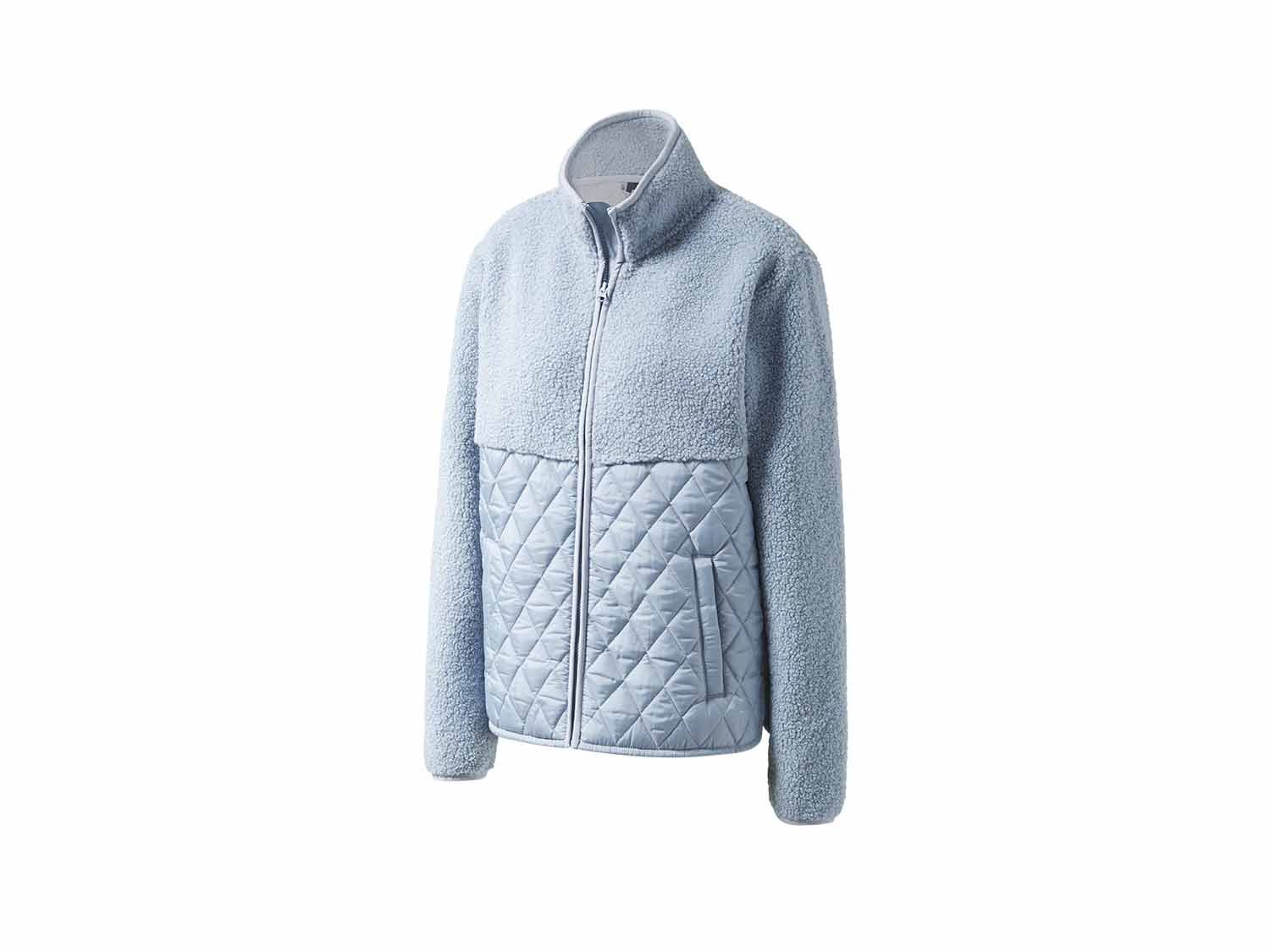 Otra propuesta de Lidl para abrigarse bien es esta chaqueta polar para mujer con cuello alzado y parte inferior acolchada. Cuenta con una cremallera completa, la parte superior está confeccionada con suave de imitación de lana de cordero. Además, lleva bolsillos laterales y una cremallera reciclada de alta calidad de la marca YKK. Disponible en modelos azul claro y azul oscuro, fabricada con material 100% poliéster en tallas S a L. Esta práctica chaqueta se ofrece a un precio de 17.99 euros.