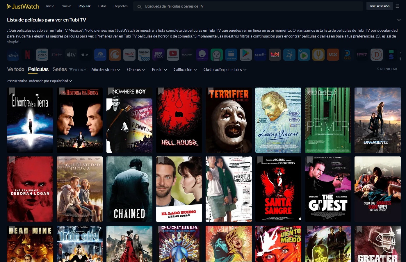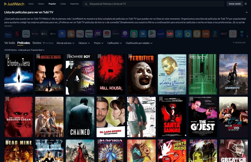 Comenzamos por Tubi, siendo una de las grandes promesas del streaming gratuito. Destaca por su enorme variedad de contenidos, presentando una biblioteca muy extensa entre las que podemos encontrar