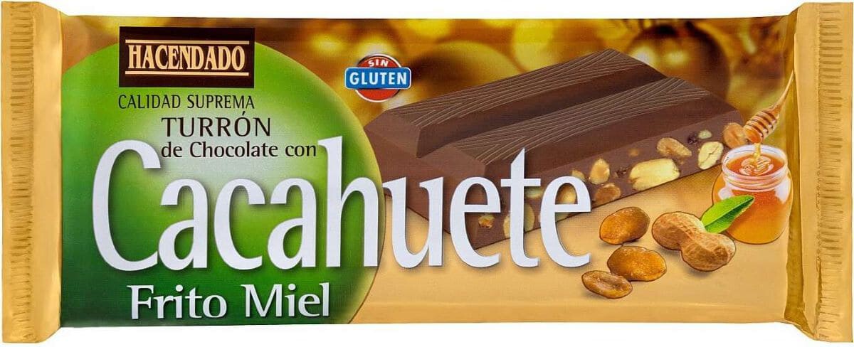Descripción: Este turrón ofrece una experiencia realmente golosa con su cremoso chocolate con leche. La combinación se enriquece con el toque salado de cacahuetes fritos y la dulzura de la miel, creando un equilibrio de sabores que sorprende al paladar. Aunque es apreciado por muchos, es importante tener en cuenta que es uno de los turrones con más calorías y menos fibra. Este delicioso turrón está disponible por 2,20 euros.