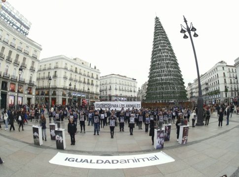 Con motivo del Día por los Derechos de los Animales, activistas de esta organización, en silencio y hombro con hombro, han exhibido «imágenes reales» de granjas y mataderos españoles, con las que evidenciaban «hasta qué punto la industria trata a los animales como objetos de los que obtener el máximo beneficio económico». El director de comunicación de la fundación, Javier Moreno, ha defendido que los consumidores tengan acceso a este tipo de representaciones, porque «la industria ganadera no muestra en su publicidad la situación de sus granjas».
