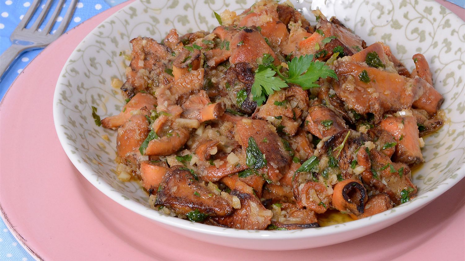 En otoño, por lo tanto, el níscalo destaca como uno de los hongos más exquisitos, junto con el boletus. Una excelente manera de prepararlos es guisándolos a fuego lento con un toque de vino, de manera que podemos lograr una textura suave sin llegar a ser babosa, algo que puede resultar desagradable para muchas personas. La receta también lleva cebolla, ajo y vino, siendo una combinación simple pero efectiva.