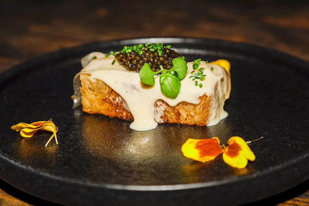 Un menú que lleva por nombre “Dine & Dance into 2024” el Chef José Manuel Herrera transporta al comensal a la fuerza de los mares, a esos “sabores que tenemos en Ibiza, sabores a mar y tierra, que representan nuestro entorno”, explica el chef, que hace un guiño a “las diferentes civilizaciones que han navegado por el mediterráneo y nos han dejado estos productos y la alegría de vivir cada momento como si fuera el último”.