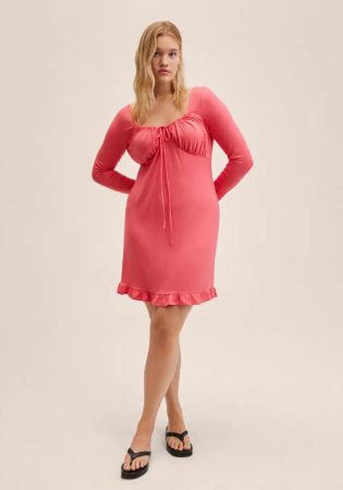 El confort es fundamental al elegir cualquier prenda, y este vestido no decepciona en ese aspecto. Elaborado en un 93% de viscosa y un 3% de elastano, garantiza una sensación suave al contacto con la piel y una flexibilidad que permite libertad de movimiento. La calidad de los materiales utilizados se refleja en cada costura y acabado, asegurando durabilidad y una sensación de lujo en su uso diario. La inclusión de diferentes tallas demuestra el compromiso de Mango Outlet con la diversidad de formas y tamaños corporales, permitiendo que más mujeres puedan disfrutar de esta prenda elegante y favorecedora.