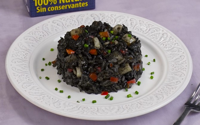 - Sirve el arroz negro en la paellera o en platos individuales. Puedes decorar con unas rodajas de limón para un toque refrescante.
